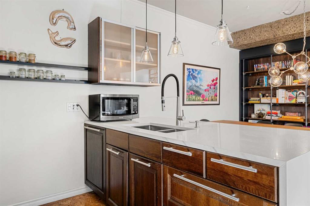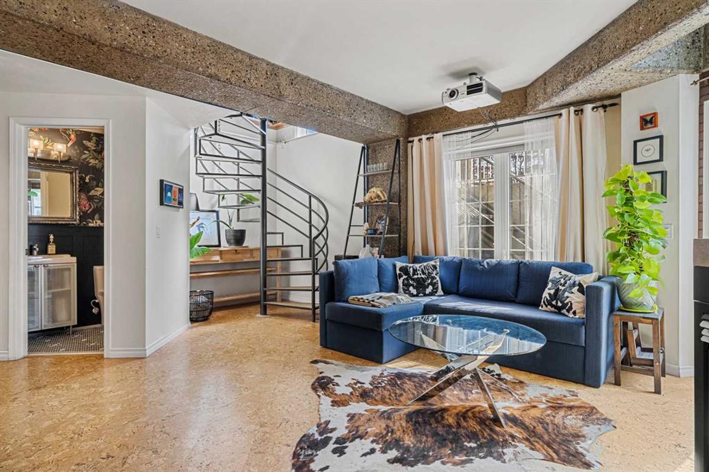 Step into this one-of-a-kind urban retreat, where modern design meets effortless comfort. This spacious two-storey condo features soaring ceilings and lofty architectural elements, including exposed concrete pillars and warm cork flooring that lend a sophisticated, industrial-chic vibe.