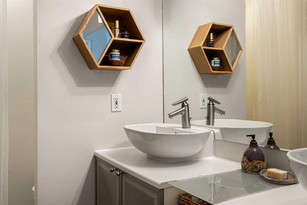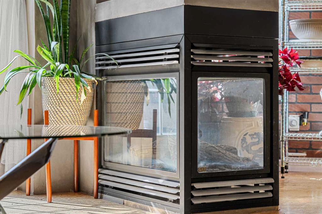 The fully renovated kitchen feature sleek quartz countertops, stainless steel appliances, mosaic tiled backsplash and contemporary finishes throughout. Ample storage with a lovely dining room with “secret door” to additional storage. The main living space is anchored by a striking three-sided fireplace—perfect for cozy nights in or entertaining guests.
