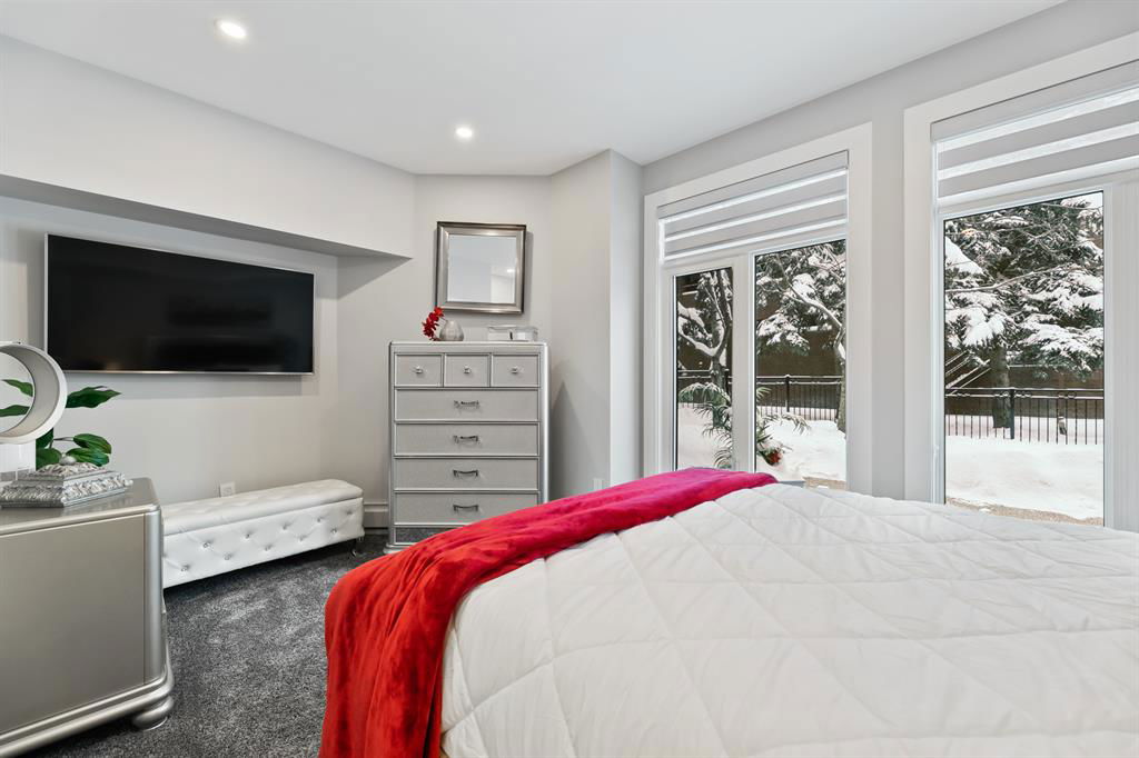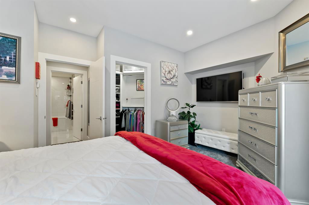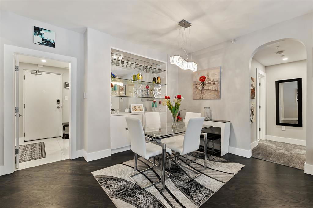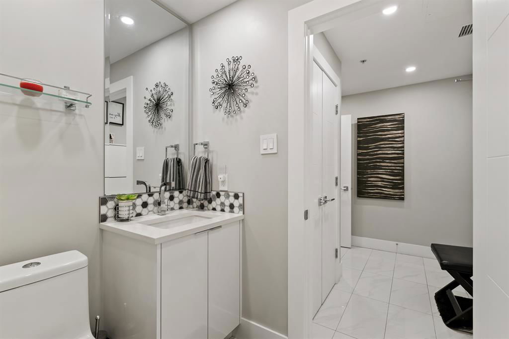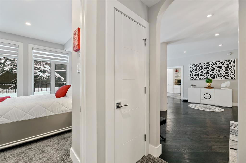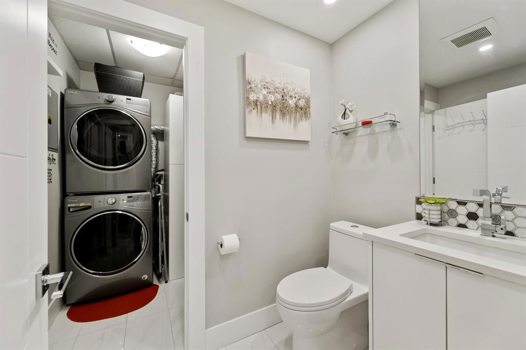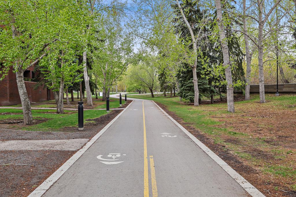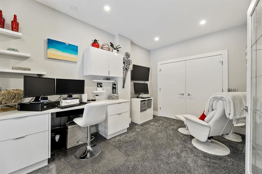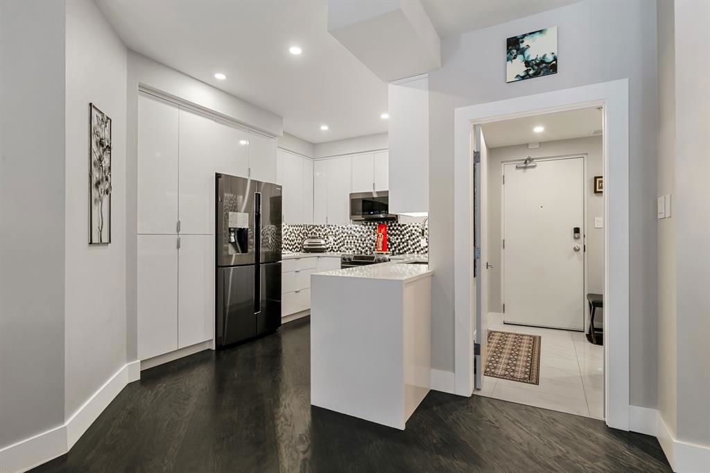 ABSOLUTELY ONE OF THE FINEST INNER CITY CONDO’S THAT CALGARY CAN OFFER! Rare main floor Eau Claire Estates condo with 2 bedrooms / 2 bath home. Truly a modern lifestyle living experience in an secure apartment setting – custom designed and built with extensive renovations, upgrades and superior concrete building quality. Over 1218 + square feet plus an exclusive outdoor fenced living area with a dual patio layout and private entry, in the heart of the city. You’ll be impressed with the inner city walkability to shops, restaurants, schools (private , daycare & public), LRT, pathways, health care needs, and all with expansive views of Prince’s Island Park and city downtown core. The island offers an abundance of year round outdoor “all age activities” such as, arts and music festival events, River Café restaurant, playground, biking, project and rental tool site, walking trails, skating, and minutes to the Zoo and Science Centre. Check out the pictures, and 3D tour video. Rich curb appeal with architectural features, extensive upgrades inside and the details are superb. Grand entry with a beautifully appointed open floor plan with high 9′ ceilings and hardwood floors. Chef’s kitchen includes spectacular white quartzite counter tops, full-height custom white gloss cabinets doors, slide in smooth top electric stove with an overhead microwave hood fan, dark grey stainless steel appliances, under mount black granite sink, wall pantry, custom tiled back splash, and a large dining with a built in wall hutch and more views. You’ll also enjoy the entertaining potential with the open layout showcasing the adjacent living room with a elegant white stone faced gas fireplace. The 16′ x 14′ living room features large bright west facing windows and easy access to outdoor patio living space. South patio – 19′ x 10′ + North patio 14′ x 11′. A stately main floor den / office / bedroom with a glass french doors and a walk-in closet. Offering modern lifestyle flexibility for your home office. Other convenient features include a back foyer with direct access to your titled parking stall, storage locker, In suit laundry room, private half bath, and no need to wait for an elevator with your grocery’s or packages. In suit laundry room. A central hallway separates the primary bedroom and full bath. The main primary bedroom includes more views of the private south patio, a spa like ensuite with dual under mount sinks, over-sized jetted tub with 10 mil glass door, and a expansive walk in closet complete this stunning owners suite. BONUS: under ground visitor parking stalls, very unique and fenced street-side entrance into unit, assigned storage locker – #72, pet friendly, and the home is ready to move into and enjoy this summer. Call your friendly REALTOR(R) to book a viewing!