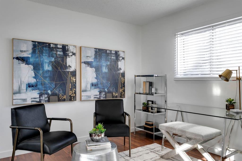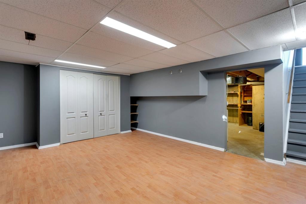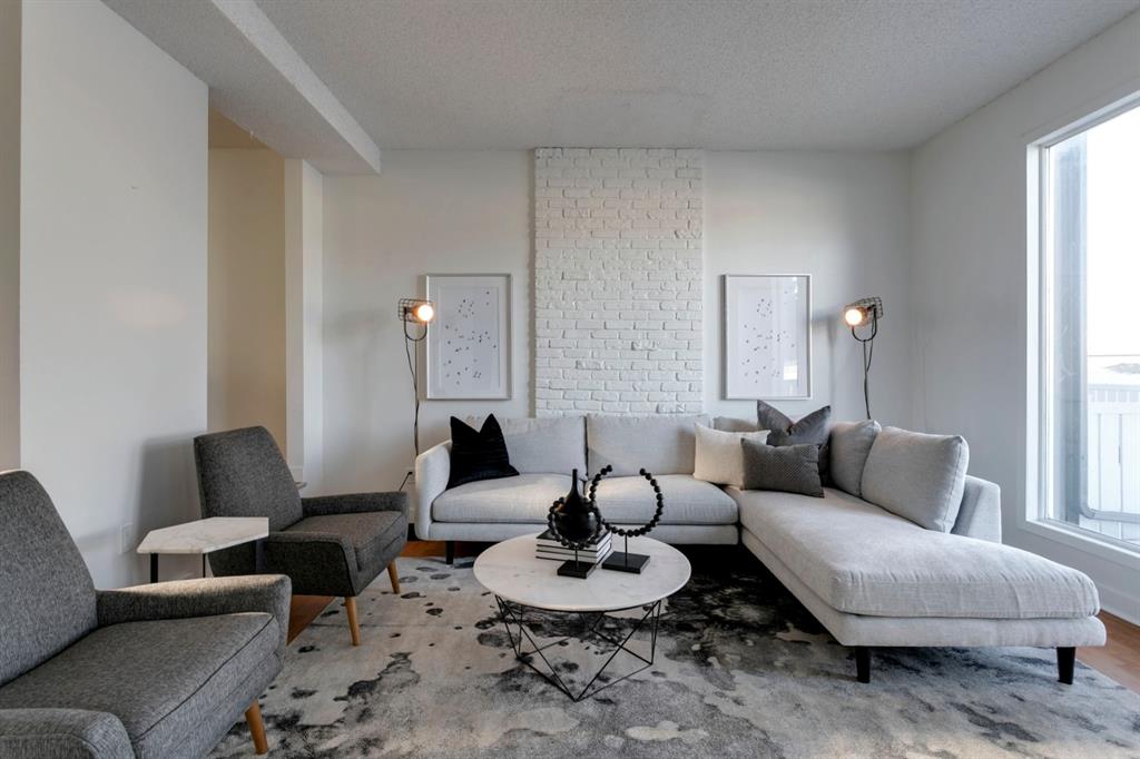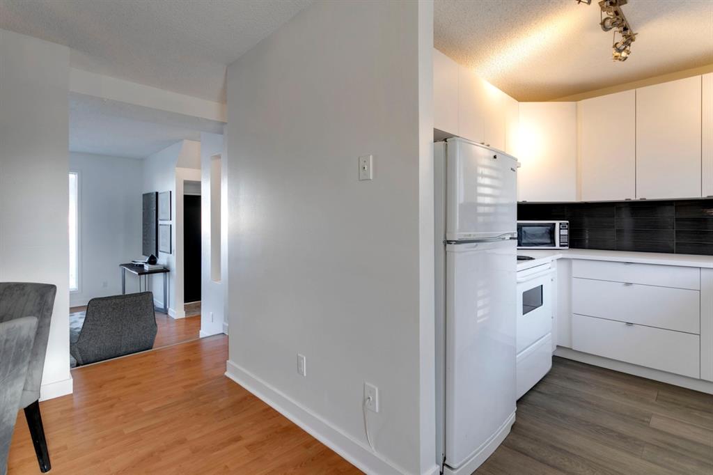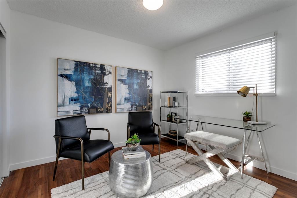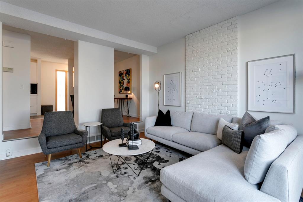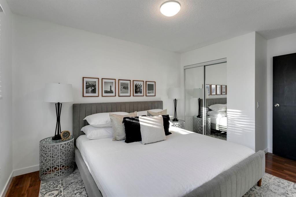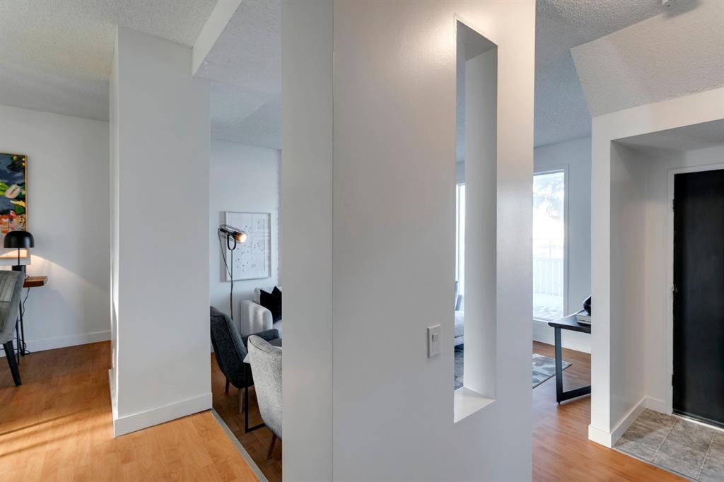 Looking for an upgrade from the typical starter home? This renovated townhome is absolutely stunning. Inside the front door, a sleek remodeled kitchen is done in pristine white with stylish black accents, and this space offers a fantastic amount of cupboard and counter space. The dining room is on this level as well, with a design that highlights the interesting architecture and open layout, and there’s a powder room here, too. The sunken living area features high ceilings, and massive windows fill the room with gorgeous sunshine, while brick details add a dramatic flair. Outside, the new deck is nearly as big as the indoor living space, and this is an end unit so it’s extremely private. The primary bedroom is utterly magical… Custom renovations have created two delightful archways that divide a luxurious sitting area or home office from the bedroom, and there are two closets as well as two doors for the ideal work from home arrangement. The second bedroom is also spacious, and the bathroom and a linen closet are set between the two rooms. Now, as much as you may want to just stay in the amazing master, there is one more floor to explore, and this one is important! The basement is partially developed with a giant rec area that is begging for your home theatre, gym equipment, or both. The other half of this level is cleverly set up with laundry, a hobby area and workbench, as well as tons of built-in shelving and space to store everything else you can think of. As for the location, there are very few places that have such great access to everything you could want or need. Both the Sirocco and 45 Street LRT station are within walking distance, and this complex backs on to a small strip mall, where you will find one of the most popular pubs in Calgary, the Regal Beagle. Just on the other side of Sarcee Trail, West Market Square in rich in amenities, and there are walking paths here as well. Set on the corner of two primary routes, the whole city is easily accessible, as are the mountains to the west. This one is exceptional, see it today! NOTE: No DOGS are allowed at the complex