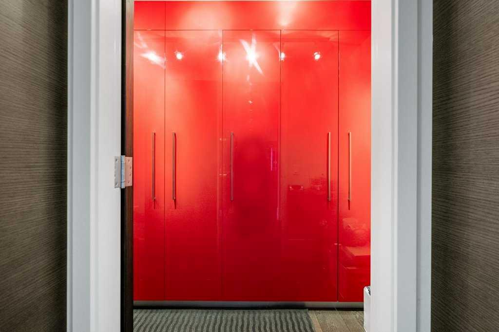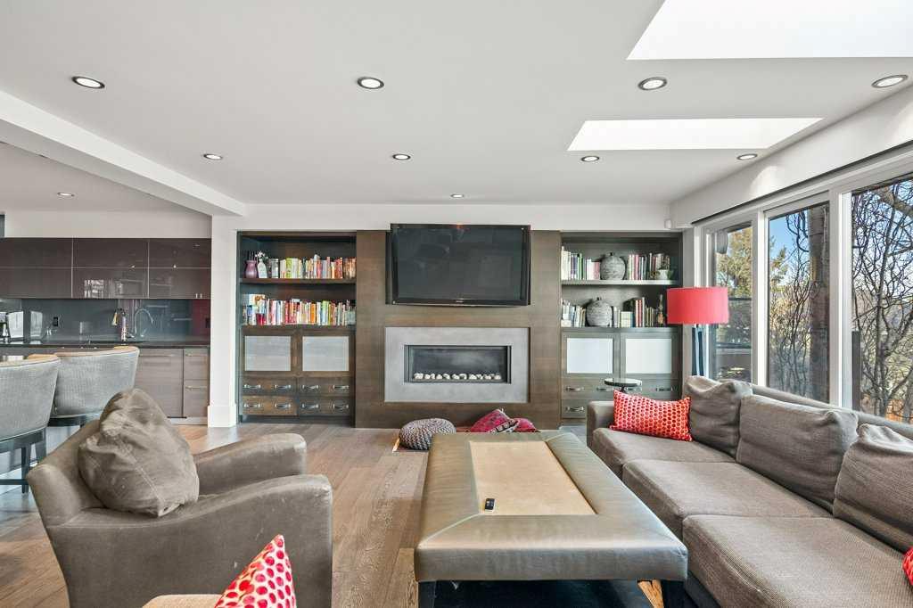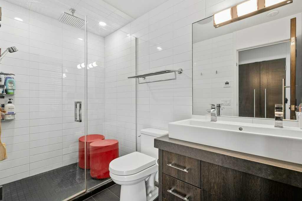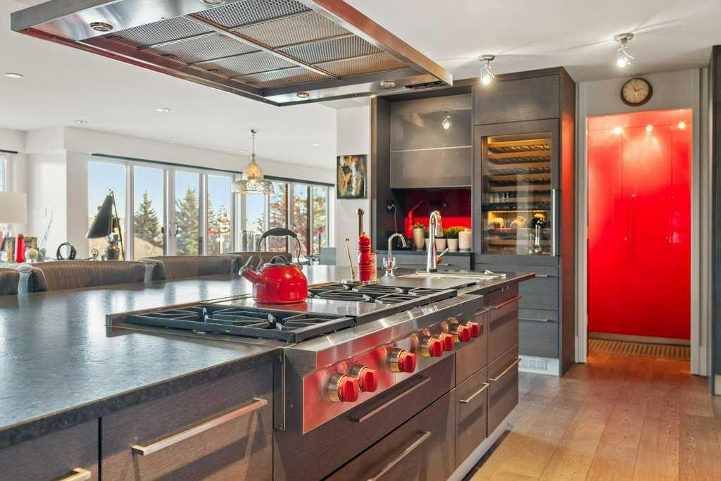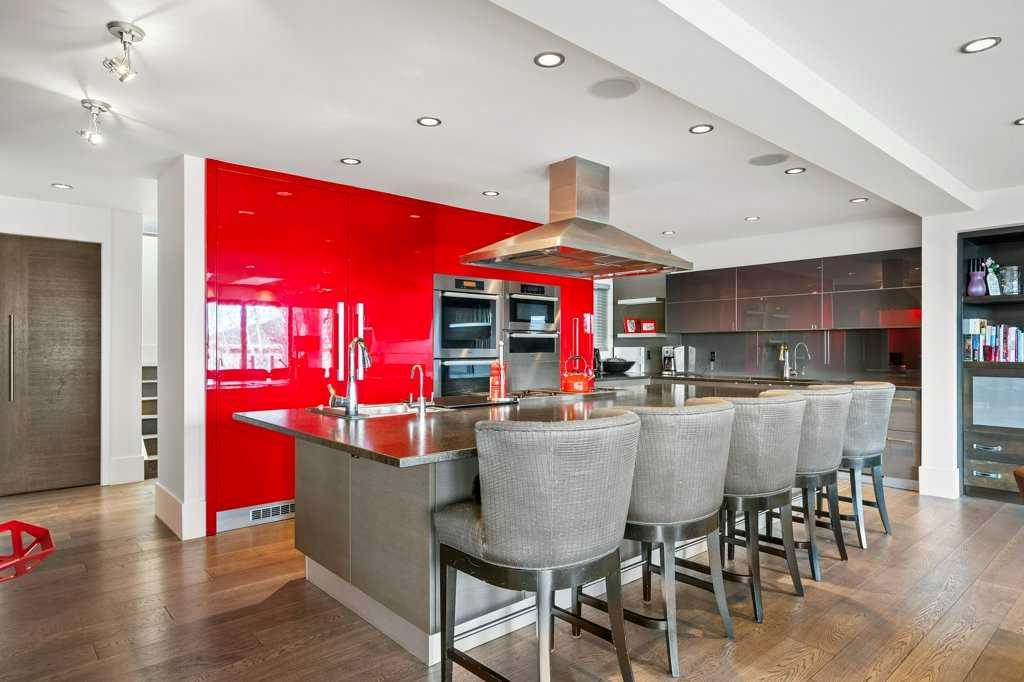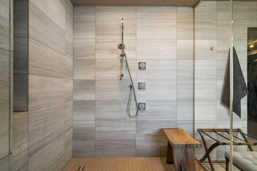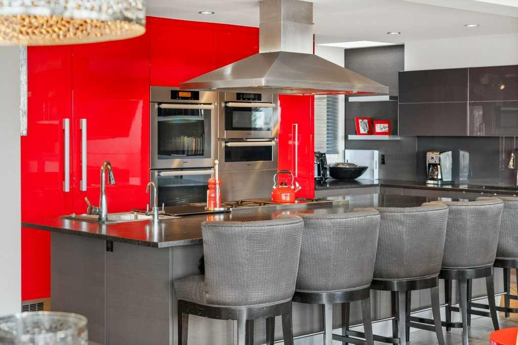 The lower level walkout, a space which has it all – an additional bedroom, spacious family room, smaller bonus room, gym, storage, and two 3-piece bathrooms. A kitchenette, equipped with a SUBZERO fridge/freezer, ASKO washer and dryer, microwave, and two Fisher & Paykel dishwashers make this an ideal space for guests or multigenerational living. The gym, with a mirror wall, leads you outside to a large covered deck in the low maintenance backyard.